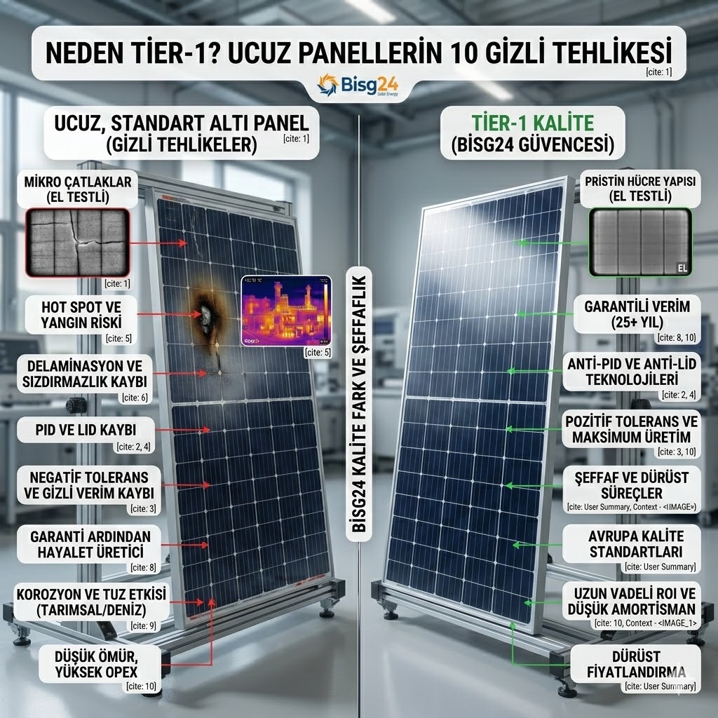 - Bisg24 Farkı: Tier-1 panellerde kullanılan ileri üretim teknolojileri ve hassas lojistik süreçlerimizle (EL Testi gibi) mikro çatlak riskini minimize ediyoruz.